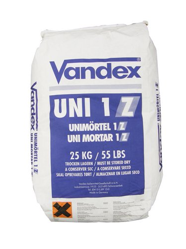 Primarily used for the reprofiling of new and old concrete and masonry surfaces prior to the application of Vandex BB75-Z. Uni Mortar 1-Z is also suitable for use on its own as a waterproofing layer.